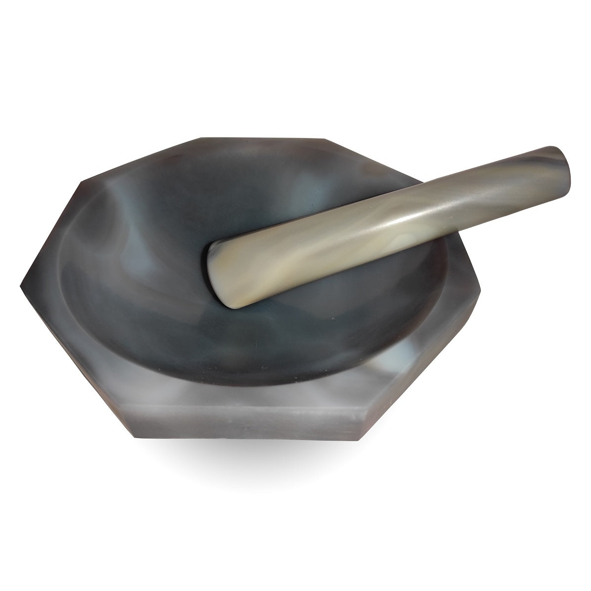 L'agate est un minéral naturel très dur. Les mortiers d'agate font partie des mortiers de la plus haute qualité utilisés en laboratoire, dans le secteur médical et dans de nombreux autres domaines. Les belles structures de cette pierre semi-précieuse rendent chacun de ces mortiers unique. Les mortiers sont faits à la main et polis, le dessous de la pierre est laissé non poli pour permettre une meilleure adhérence à la surface.